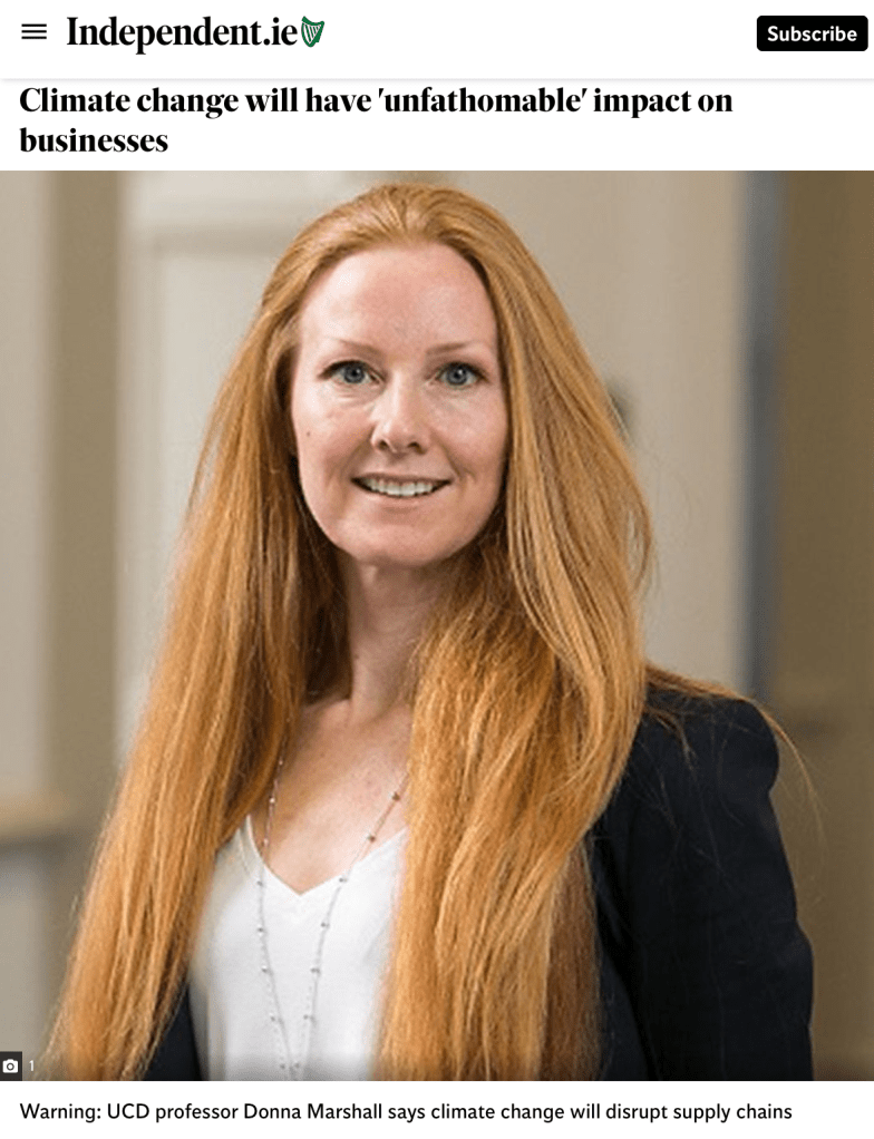 Scientific evidence in terms of climate change modelling shows that the worst-case scenarios are much more critical than what was previously thought. Prof. Donna Marshall was featured by Independent.ie in an article where she explained how on how companies must get prepared for climate change.