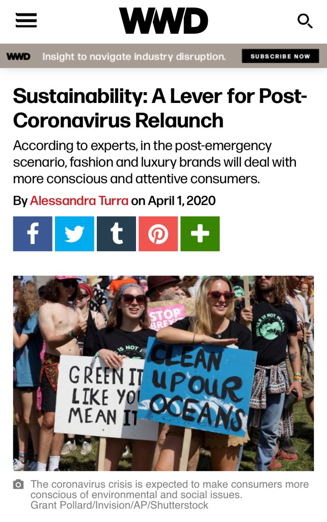 WWD ARTICLE ON SUSTAINABILITY AND POST-COVID