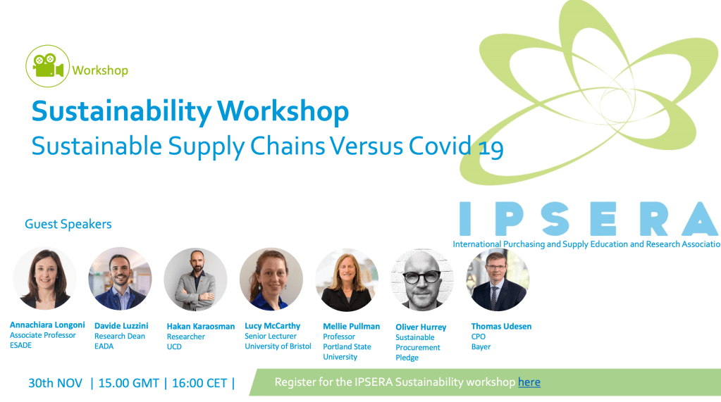 IPSERA is hosting ‘Sustainable Supply Chains Versus Covid-19’ Workshop on Mon, Nov 30, 4:00pm CET.